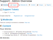Once in the admin part of the component, you can use the "Support" tab to view any tickets that have been submitted by your sites users.